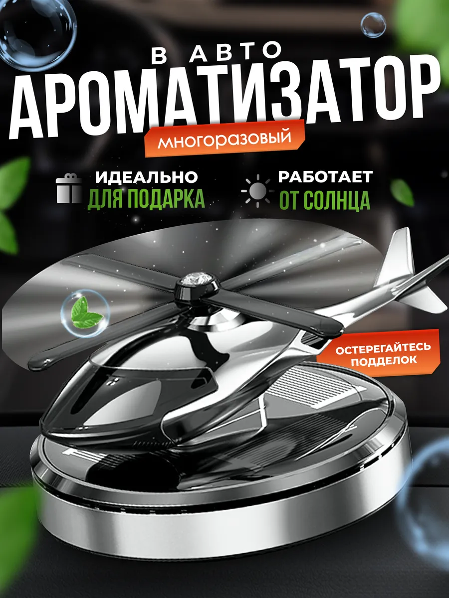 Встречайте, новый как металлический гаджет, уникальный автоосвежитель фигурка вертолёт с вращающимся винтом от солнечных лучей и распыляющим эффектом. Автомобильный Автопарфюм бренда "AromaPremium" создан, чтобы подчеркнуть стиль мужчине или женщины автоледи и абсолютно безопасен для вашего здоровья.